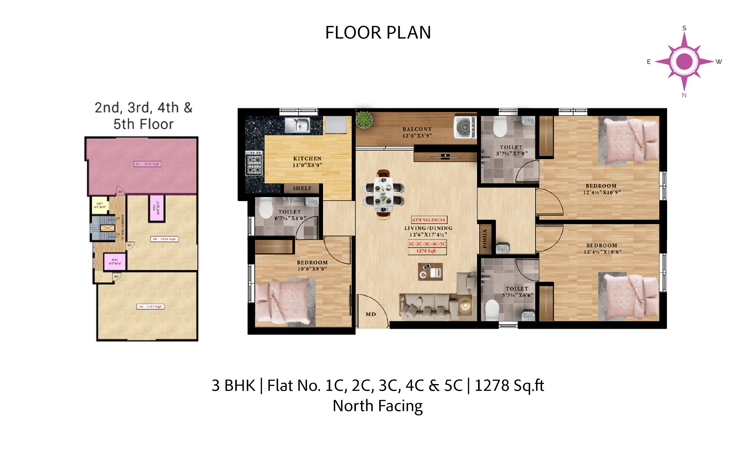 - 3 BHK (1278 sq.ft)