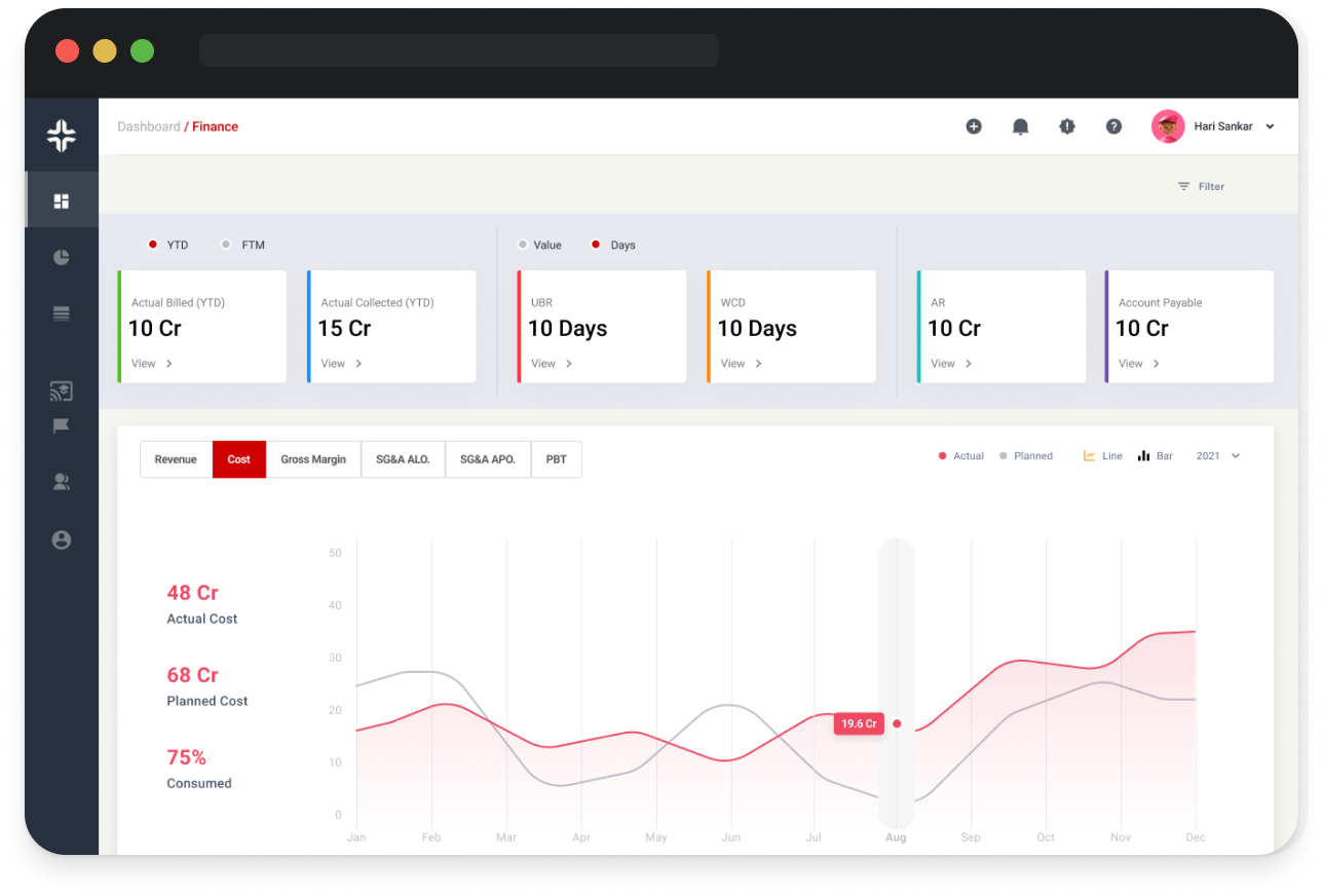 Efficient bill reimbursement through integration of HRM and Finance, timely customer payments via exclusive app, and accurate costing sheet for expense prediction.