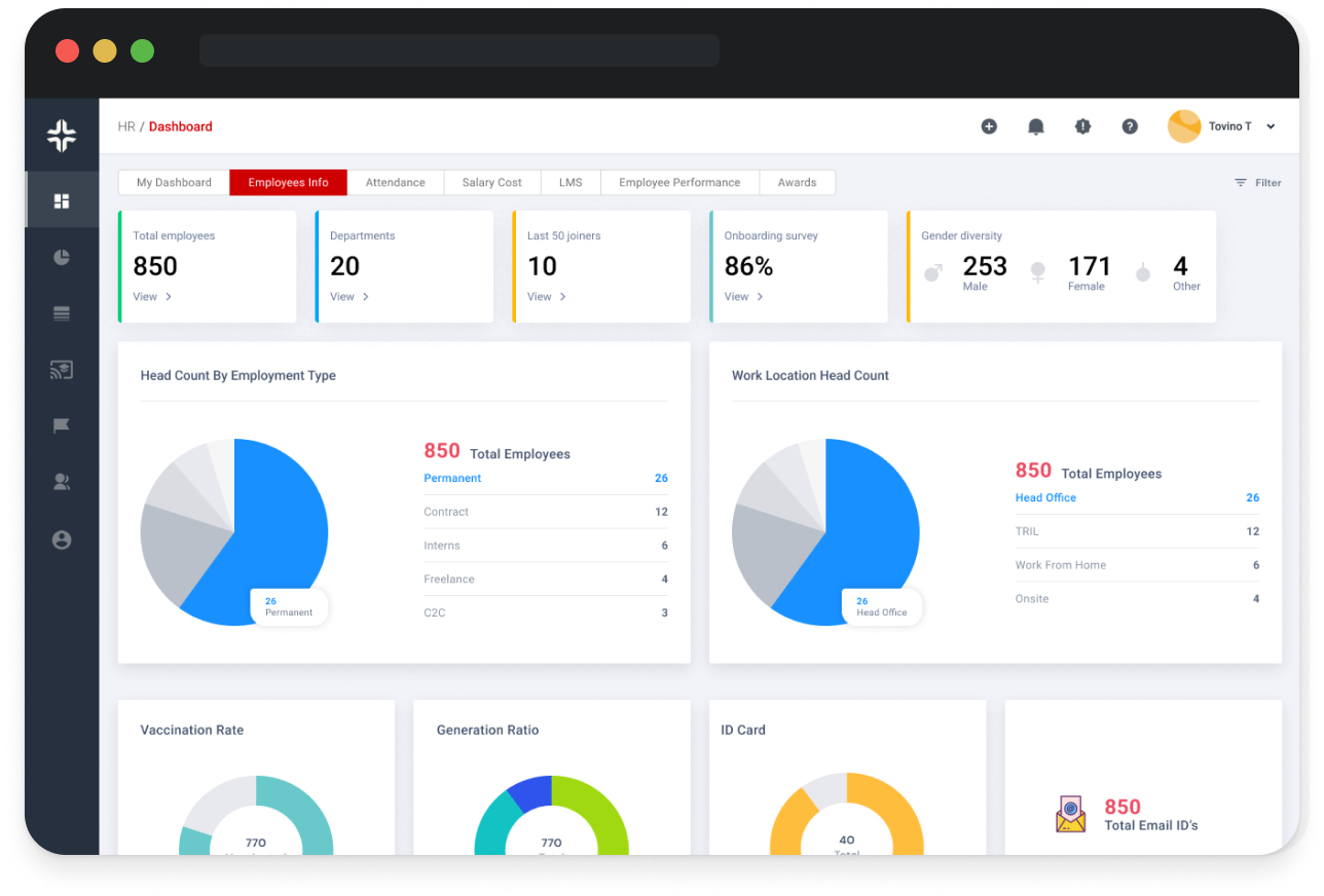 Integrated dashboards updated with real-time employee data makes resource management a cake-walk.