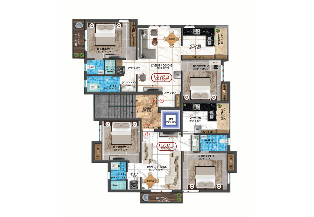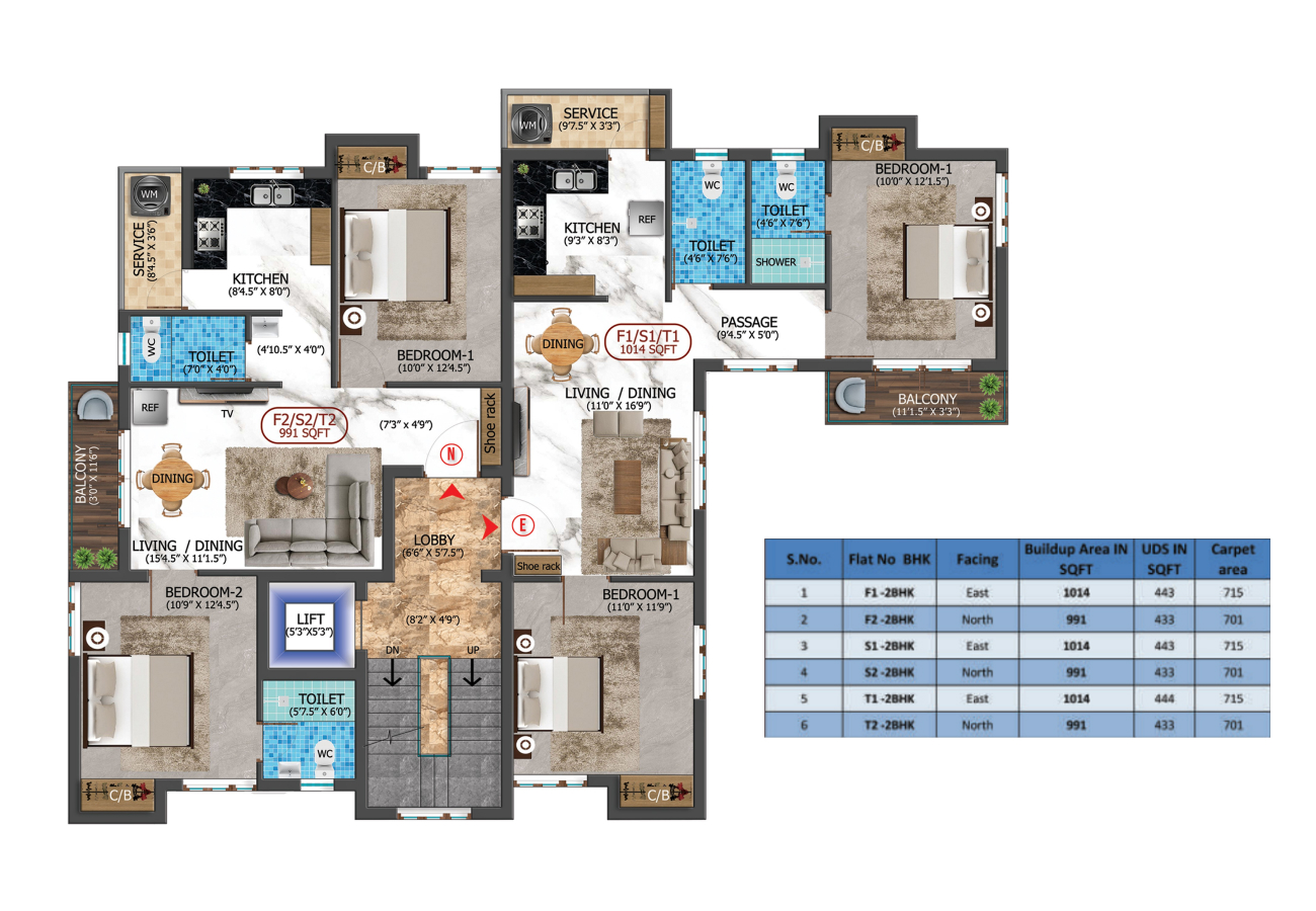 Comprising four thoughtfully designed towers—Sai Suroopa, Sai Aroogya, Sai Akshaya, and Sai Srishti—each home is crafted for joyful living. Sai Suroopa features 6 well-planned 2BHK apartments ranging from 917 to 970 sq.ft., while Sai Aroogya offers 6 spacious 2BHK apartments from 991 to 1014 sq.ft. Sai Akshaya brings you 6 elegant 2BHK homes ranging from 973 to 1045 sq.ft., and Sai Srishti presents 3 exclusive 2BHK apartments of 1041 sq.ft.