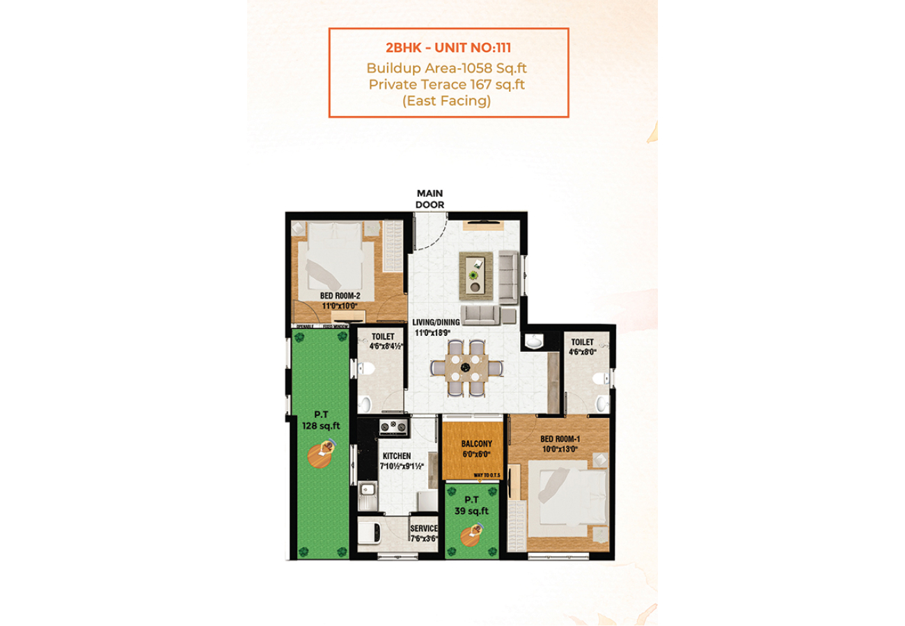 • Individual Septic Tank will be provided for each block’s & main door grill gate will be provided.